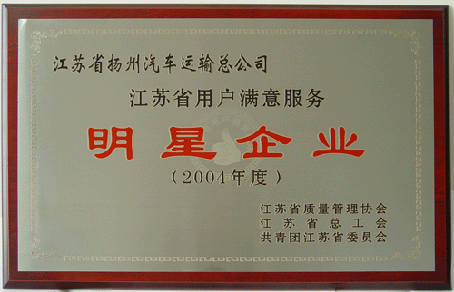 首頁 > 榮譽之窗 > 2004年度江蘇省用戶滿意服務明星企業