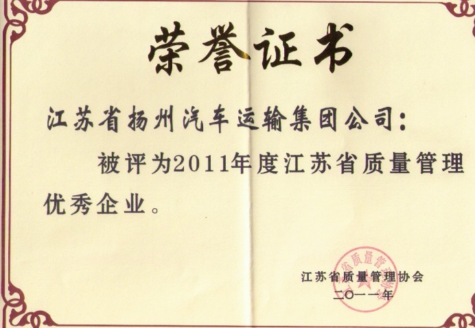 集團公司榮獲2011年江蘇省質量管理優秀企業稱號