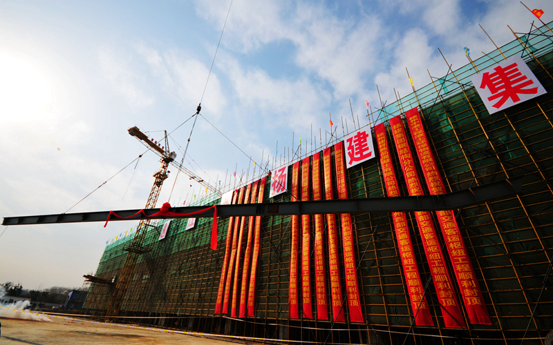 最后一根40米大梁吊裝成功 揚州西部交通客運樞紐主體建筑封頂