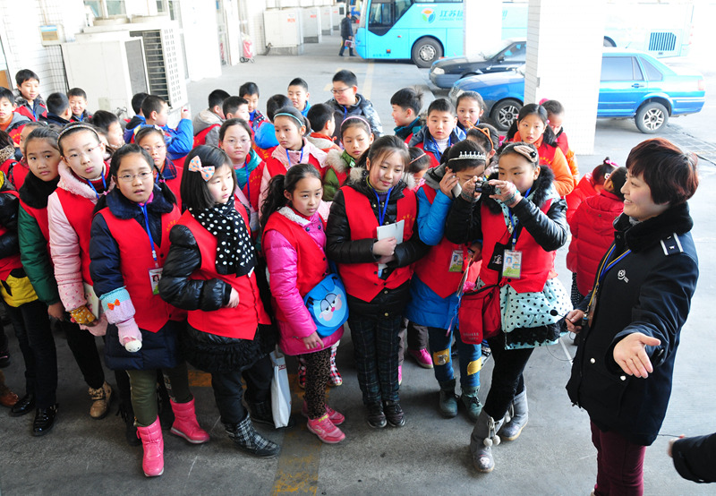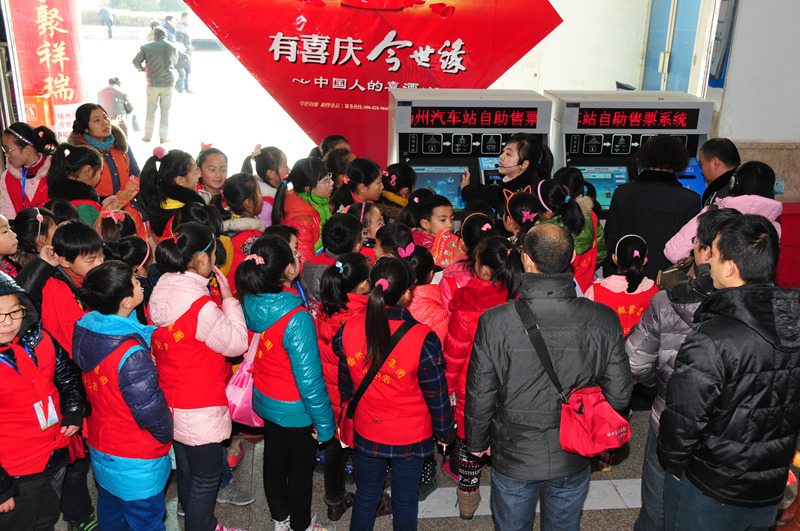 1月22日,來自揚州報業傳媒集團的60多名小記者來到揚州汽車站,觀看了GPS監控中心、售票大廳和自助售票機工作情況,體驗了車站安檢、檢票工作,并采訪了揚汽集團總經理、黨委書記吳忠俊……他們在現場親身體會了繁忙而和諧的2014年春運。