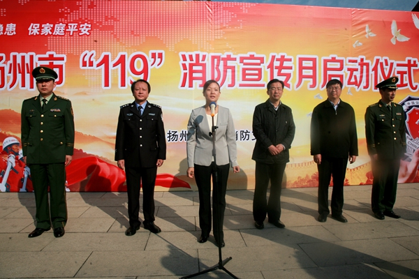 11月5日上午,揚州市公安局消防支隊在瘦西湖風景區舉行“119”消防宣傳月啟動儀式。揚州市副市長張寶娟、市政府副秘書長王玉軍、市公安局副局長劉毅、消防支隊主要負責人和瘦西湖消防志愿者、揚汽集團以及全市消防重點單位負責人、學生代表200余人參加了活動。