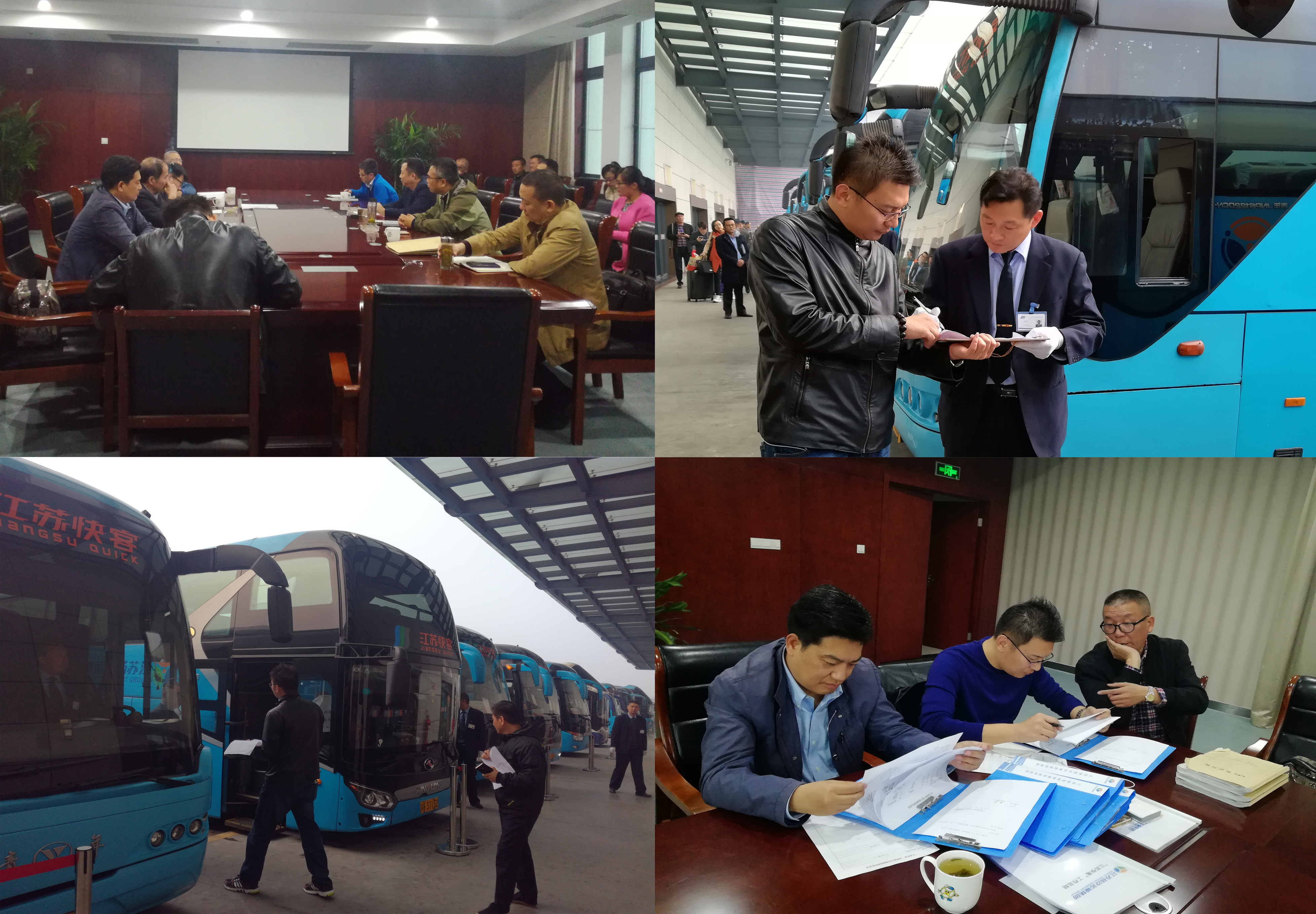 13日下午,檢查組聽取了我司關于“江蘇快客”品牌班車創建、維護及管理工作情況的匯報,并對自查、互查臺帳、服務質量旅客意見處理、缺班誤班記錄、車站滿意率調查表及監控登記臺賬等資料進行詳細檢查。14日早晨六點半,檢查組分兩路奔赴西部客運樞紐和汽車東站,現場檢查“江蘇快客”品牌班車的車容車貌、硬件設施、駕駛員安全喊話及服務規范等,并對照《“江蘇快客”現場考核評分標準》逐一打分。