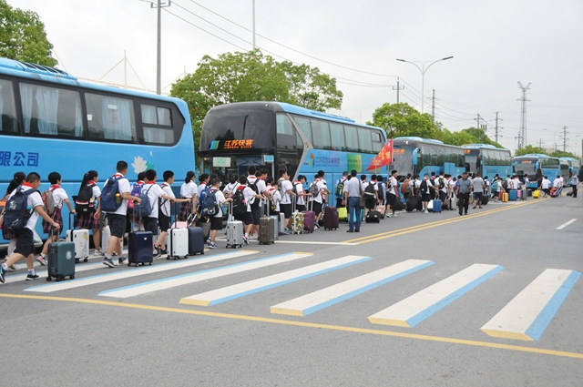 江蘇揚汽集團承擔了此次新生運輸任務,由旅游出租分公司牽頭,抽調快客、快鹿等各有車單位的大客車38輛,運送樹人中學師生近2000人。