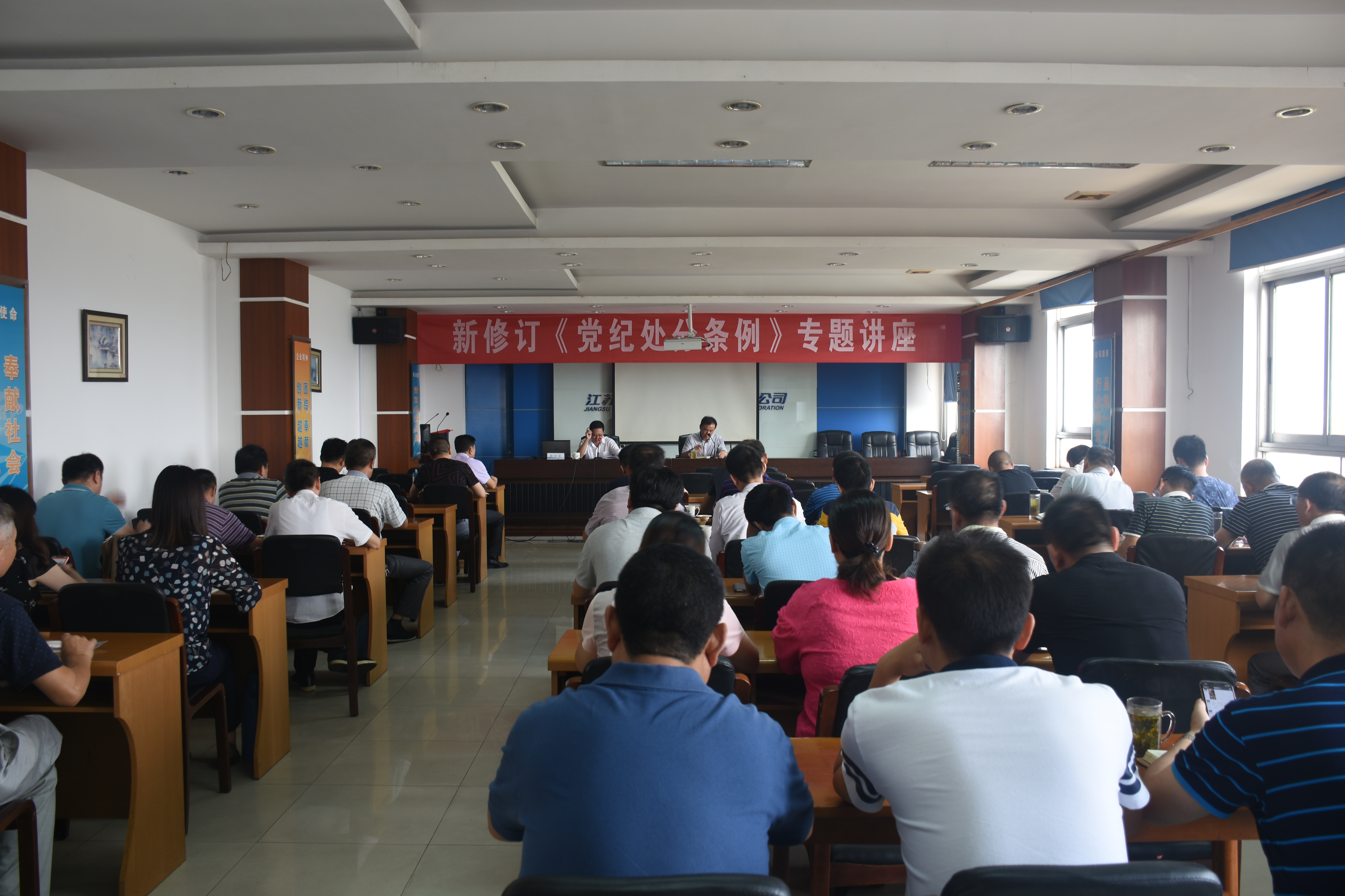 9月19日上午,集團公司邀請市紀委監委第十紀檢監察組陳世信書記對于新修訂的《中國共產黨紀律處分條例》進行解讀。市交通產業集團副總經理兼揚汽集團黨委書記、董事長、總經理曹遠志,黨委副書記顧懷,副總經理談衛國、陳家宏、張金明以及集團公司中層干部及處室黨員參加了專題講座。