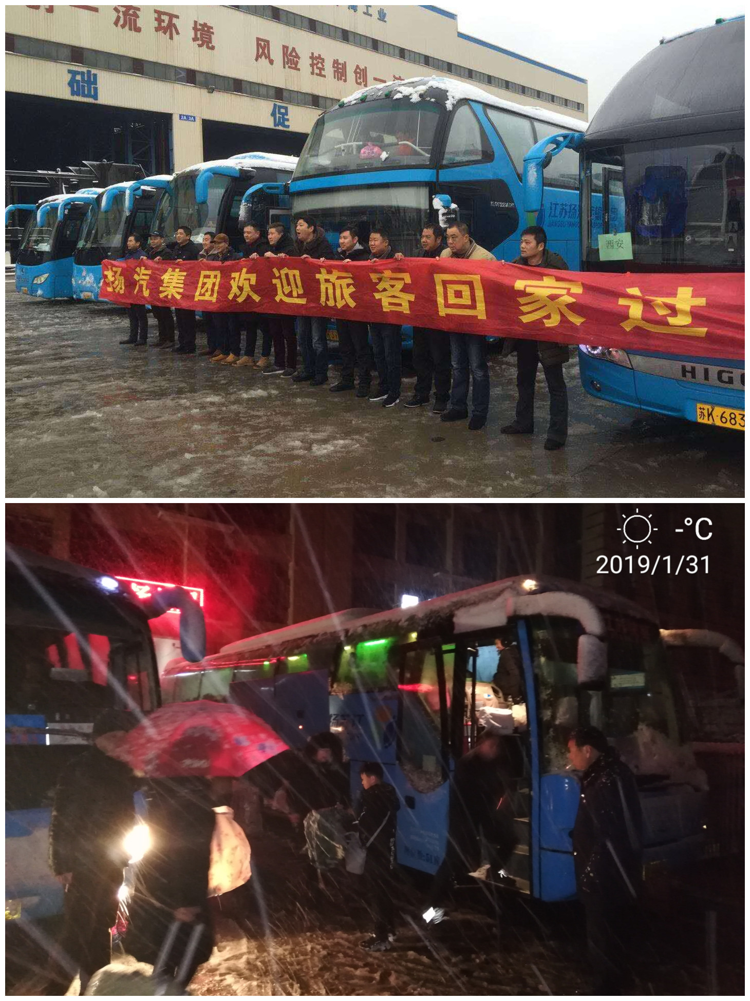 另外當天早晨6點不到,在紛飛的雪花中,揚州杭集晨笑刷業(yè)、江都安凱汽車制造、中海公司的260余名農民工朋友也坐上了東站的“返鄉(xiāng)直通車”,歡歡喜喜的回家過年。