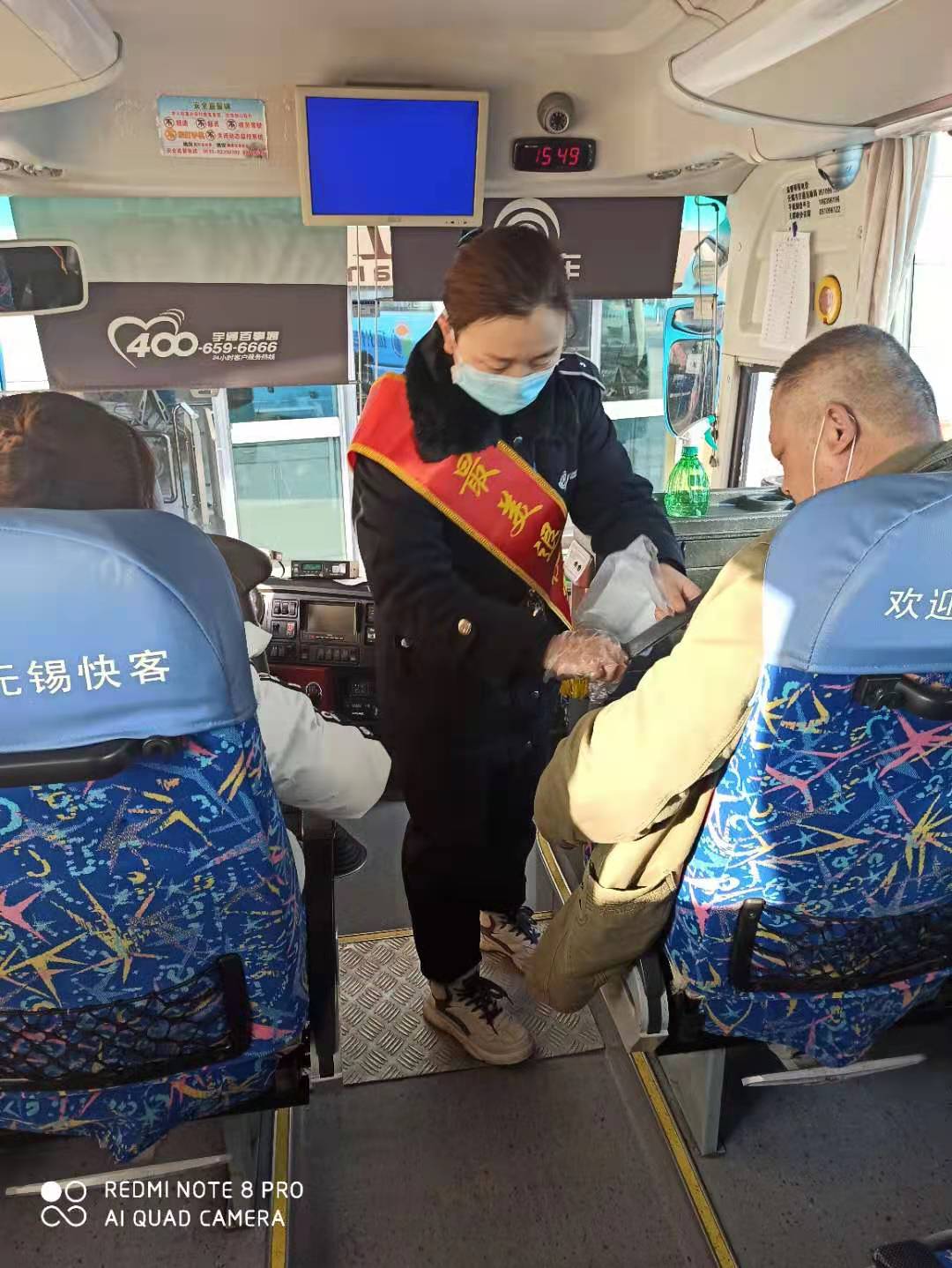 “您乘坐的車輛已經(jīng)消毒過,請放心上車…,老人家,你倆戴的口罩破了,我這有新的,請你換上…,請大家保持一米距離檢票,時間充裕,不會耽誤大家行程…,請大家檢票上車后,系帶好安全帶,口罩不能摘…”。一連串的溫馨提醒和戴著口罩仍在眉宇間“跳躍”著的笑容,讓旅客感到十分暖心。口不停、手不停每天數(shù)百遍地完美重復(fù)為旅客服務(wù)的場景,正是她幾年軍營生活、過硬作風養(yǎng)成的積淀,更是她退役轉(zhuǎn)崗后,愛崗敬業(yè)的生動寫照。前幾日的一天下午,有位蘇州的旅客一旁候車時,看到當班吳琳檢票發(fā)車時嫻熟的連貫動作和麻利果斷指揮發(fā)車標準旗語手勢時,情不自禁地掏出手機,“啪差…”拍個不停,嘴里還自言自語道:“這個畫面好,這個畫面好…”。