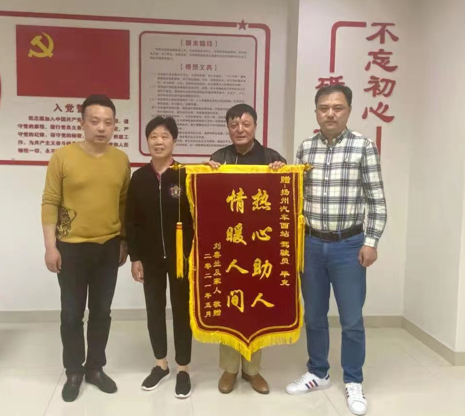 5月6日下午,張先生和劉女士風塵仆仆的來到揚汽定制公司,為表達對高郵健康定制線畢克師傅的謝意,老人們手捧錦旗以表感謝之情。