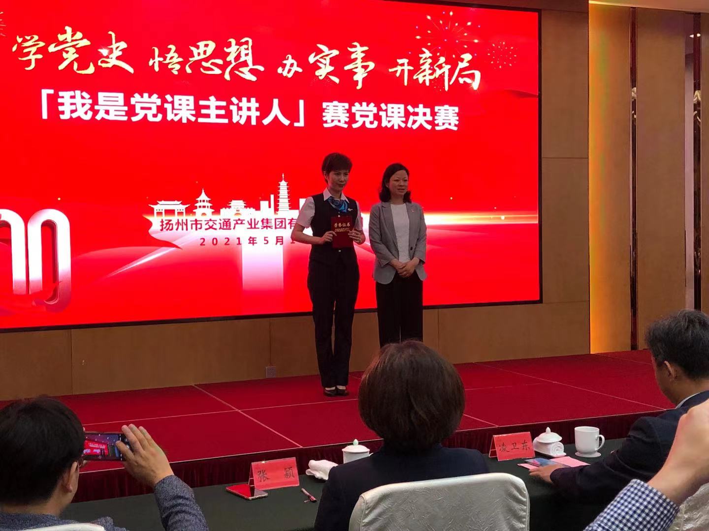 賽前,揚汽集團黨組織高度重視、迅速響應,經過初賽選拔,共產生3名優秀黨課主講人代表揚汽集團參加市交通產業系統舉辦的決賽。經過激烈角逐,來自集團汽車東站黨支部的楊梅獲得一等獎,揚州站黨支部的任靜和江都分公司黨支部的周亞茹獲得優勝獎。在比賽中,楊梅同志舉止自然得體,體現朝氣蓬勃的精神面貌,緊緊圍繞主題,精選材料,突出重點,展示亮點,并做到旁征博引,層層渲染,步步深入,喚起聽眾的思考和共鳴,從而使演講具有感染力和吸引力,表達了對“學史鑒往守初心、迎難而上擔使命”內容的理解。