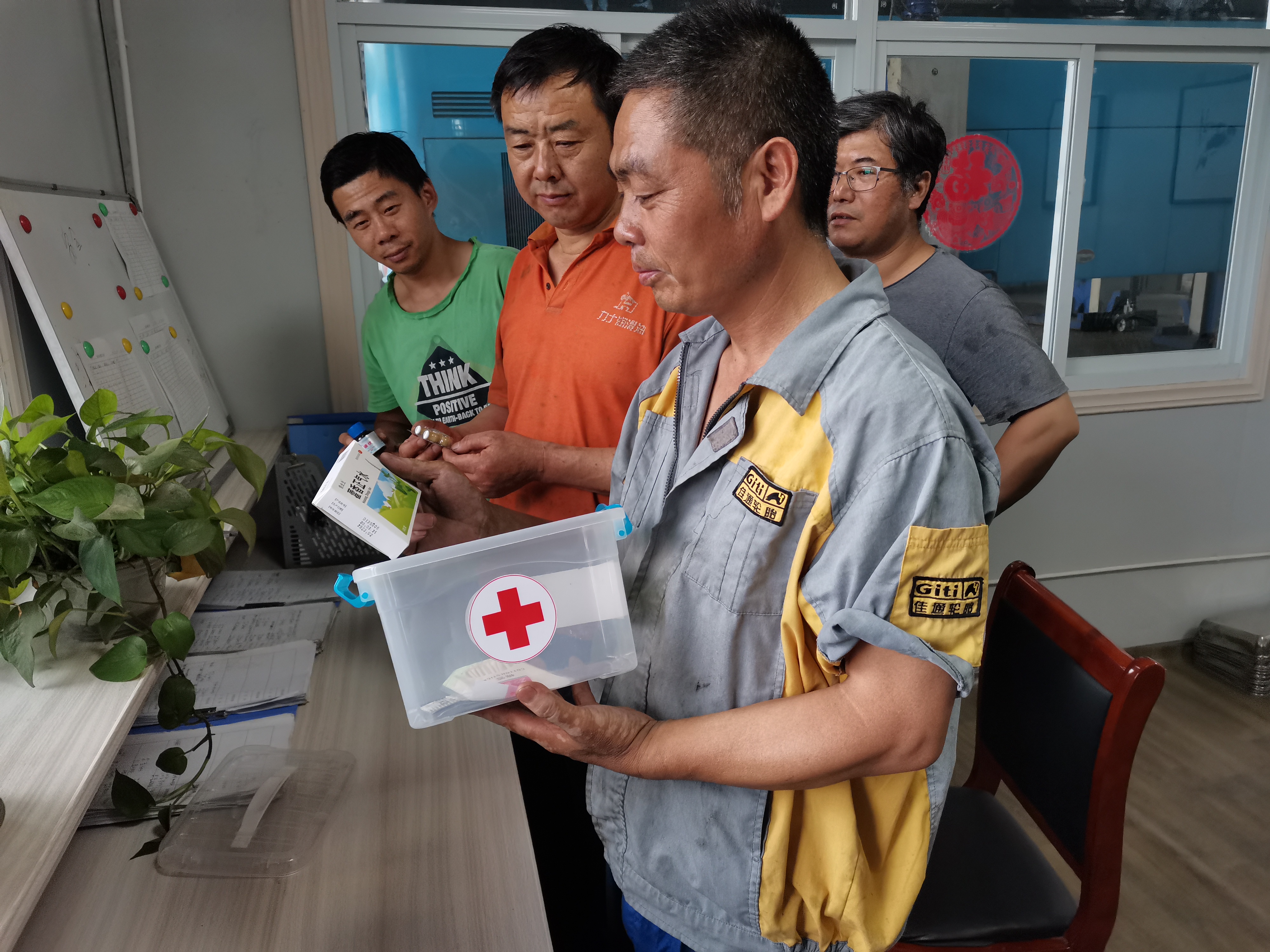 修理廠黨支部針對職工老齡化、“三高”人員普遍存在等問題投入了關注和關懷,給各部門配置了應急醫藥箱,藥箱內配備有救心丸、人丹、十滴水、創口貼、醫用酒精等藥品。同時,為了切實發揮“應急醫藥箱”的作用,還明確專人對醫藥箱進行管理,定期更換或補充所需藥品。
