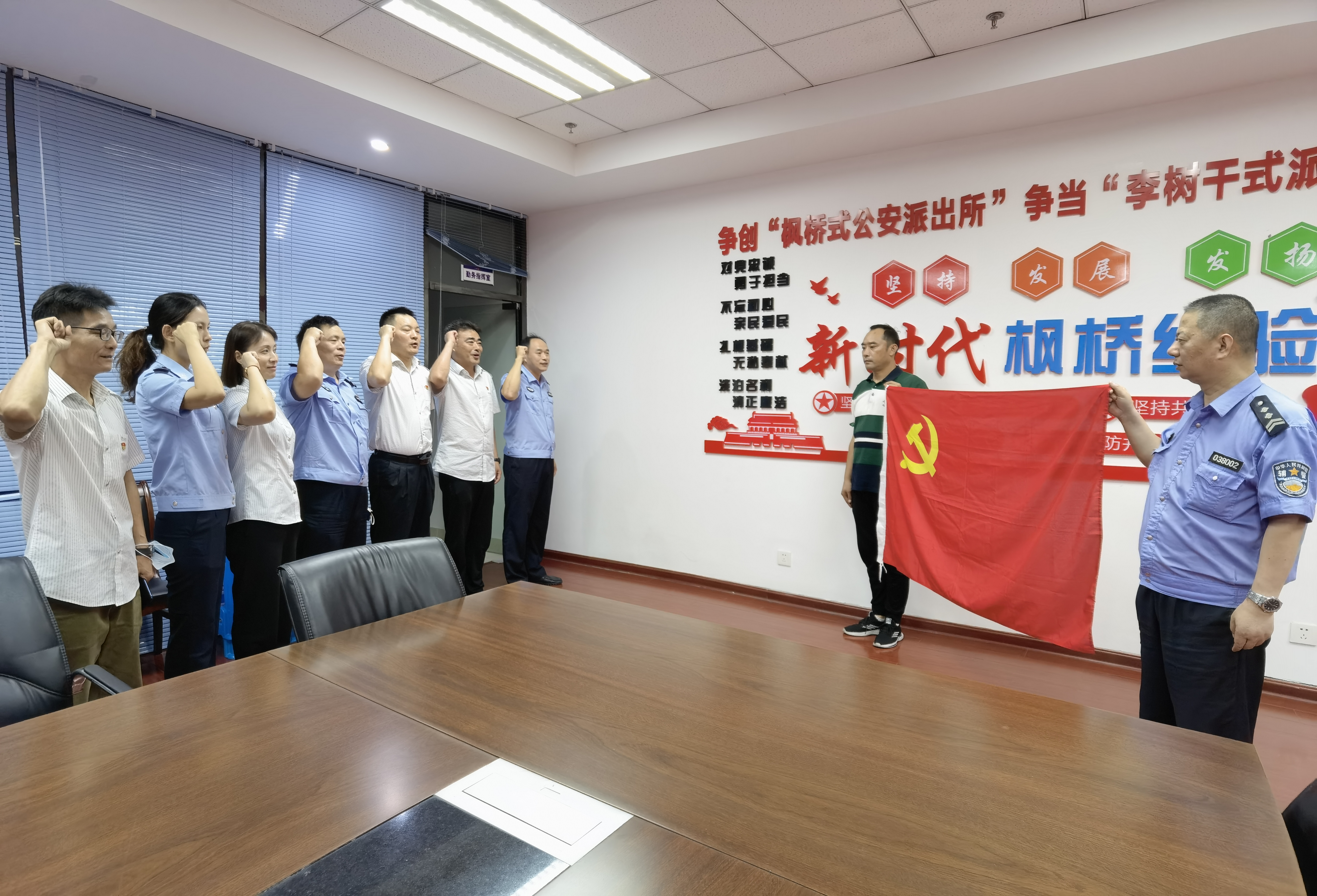 雙方支部圍繞如何利用黨建聯(lián)建加固戰(zhàn)斗堡壘、開展互幫互學(xué)、探索黨建工作新路徑、提升黨建質(zhì)量等方面進(jìn)行了座談交流,并達(dá)成了共識(shí),加強(qiáng)警企溝通,有效地提高工作效率、提升工作效能,雙方黨員還一起重溫了入黨誓詞。