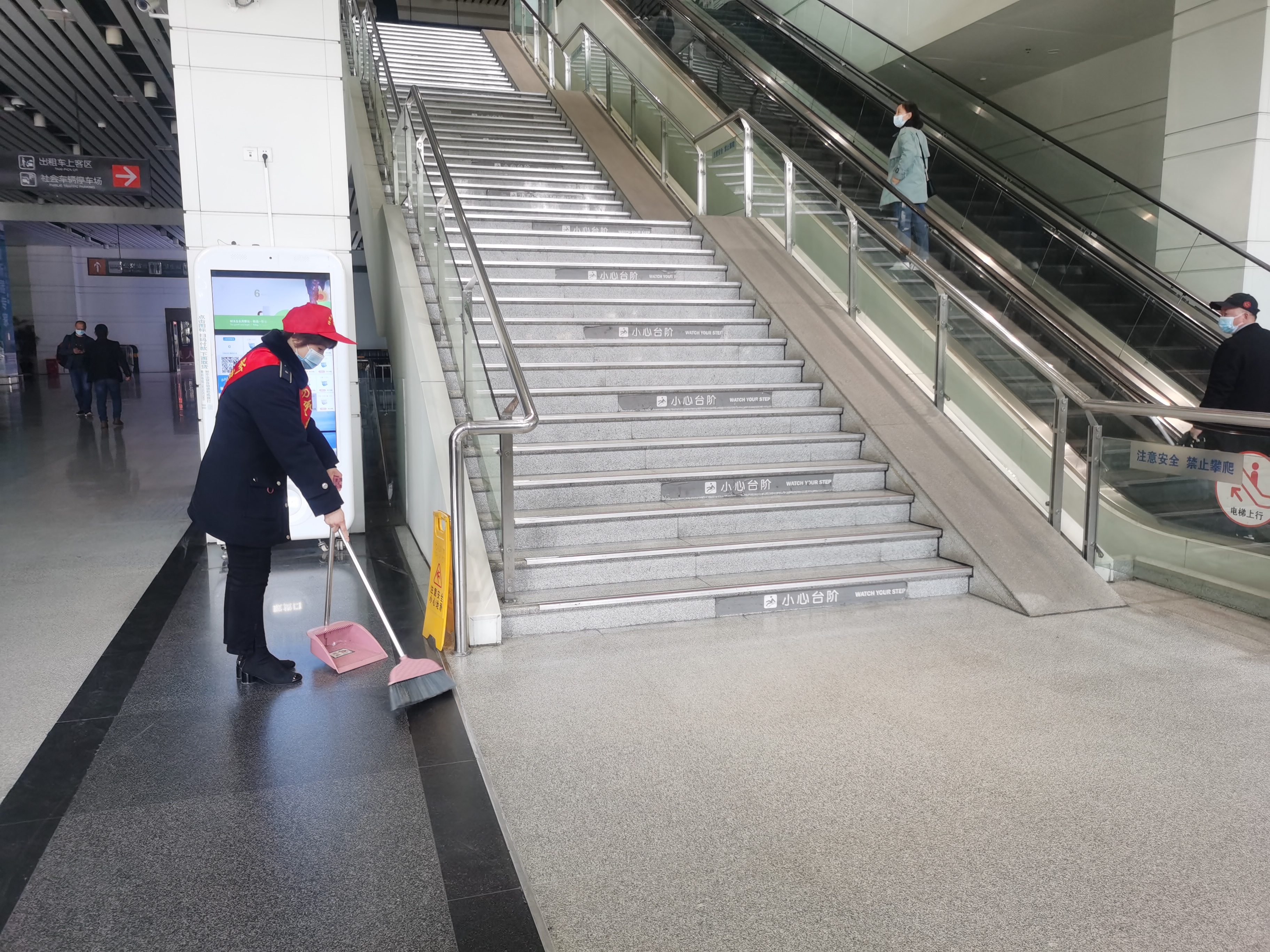 車站作為城市窗口單位之一,為保證乘車環境的衛生,車站內實行動態清掃制度,保持地面干凈整潔,利用櫥窗展板、易拉寶等多種形式廣泛傳播社會主義核心價值觀,把“講文明樹新風”“八禮四儀”“垃圾不落地 揚州更美麗”等主題融入車站空間,更好地維護站區秩序,有序引導旅客進出站。