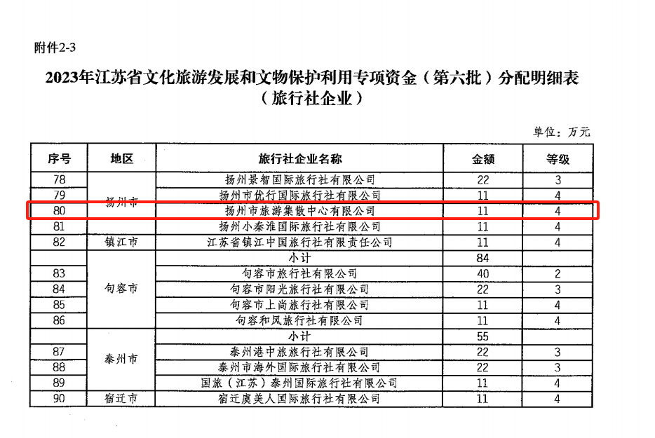 近日,江蘇省財(cái)政廳、江蘇省文化和旅游廳公示了2023年江蘇省文化旅游發(fā)展和文物保護(hù)利用專項(xiàng)資金旅行社企業(yè)名單,揚(yáng)州旅游集散中心成功入選。